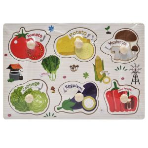 Дерев'яний пазл-вкладиш Овочі 53972-8 ручка-тримач, у плівці