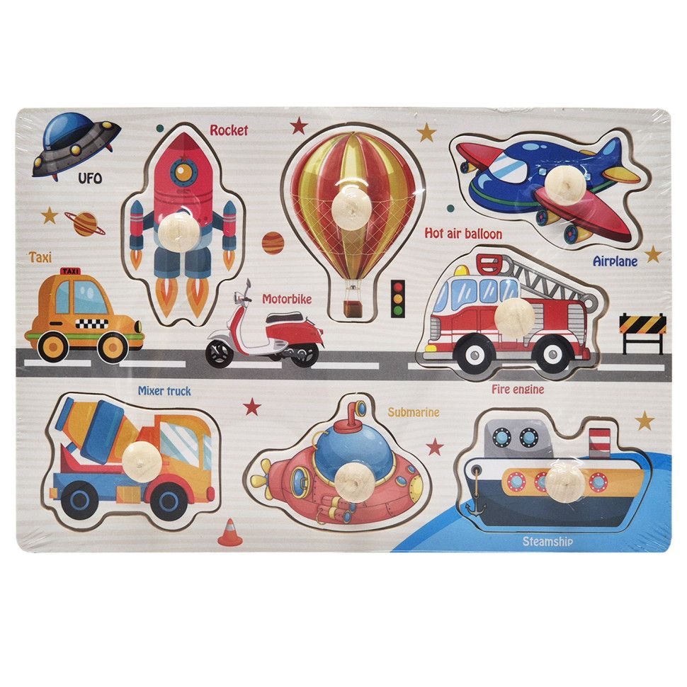 Дерев'яний пазл-вкладиш Транспорт 53972-3 ручка-тримач, у плівці