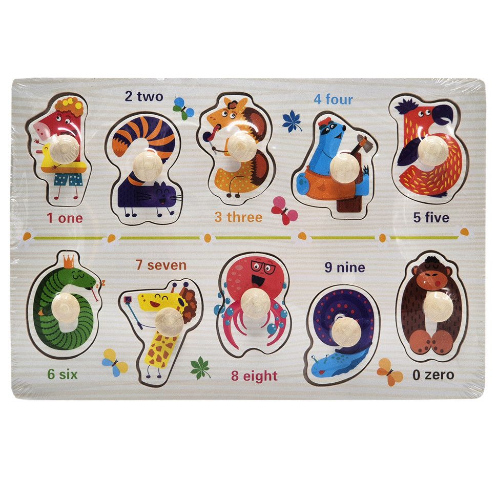Дерев'яний пазл-вкладиш Цифри 53972-5 ручка-тримач, у плівці