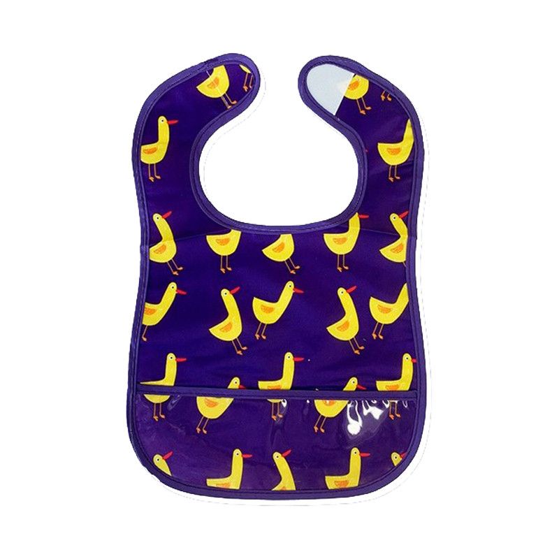 Слинявчик легко одягається та знімається завдяки зручній липучці, яка дозволяє регулювати обхват шиї. Матеріал простий у догляді — його легко протерти або помити після використання.