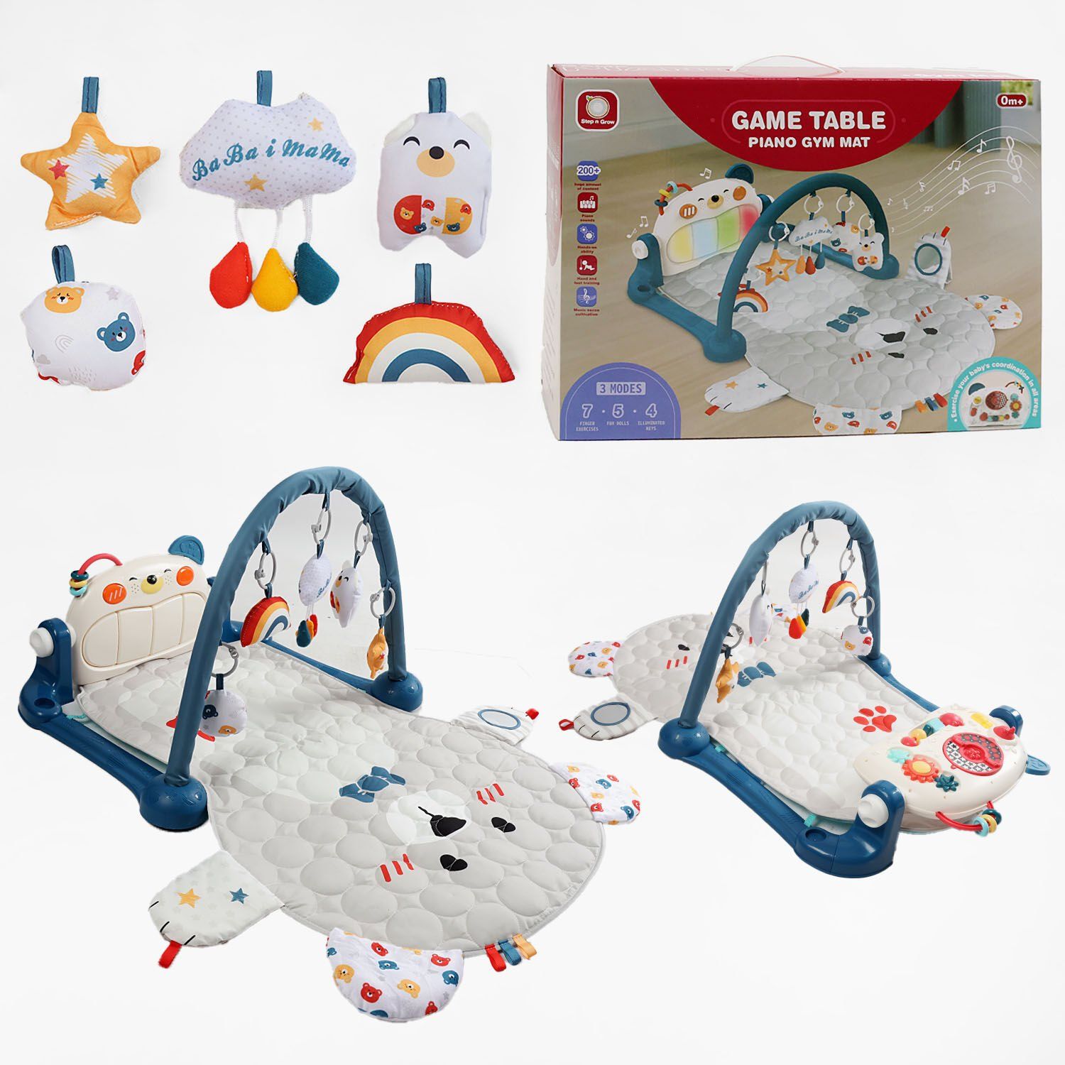 Дитячий Килимок (HX 9158) A Штрих = 50972 СИНІЙ, розмір - 99х61 см, висота дуги - 45 см, піаніно - бізіборд, підсвічування, звуки, фігурки, підвіски