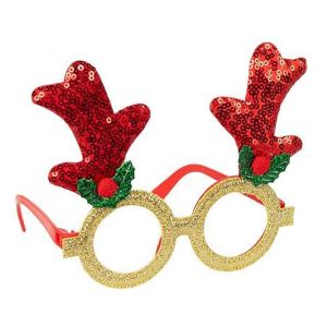 Новорічні окуляри без скелець із декором у вигляді блискучих ріжок та святкових елементів. Прикрашені паєтками й глітером, створюють веселе новорічне настроювання та підходять для фотосесій, вечірок і карнавальних костюмів. Виготовлені з легкого пластику. Розмір: ширина 14 см, висота 13 см, діаметр оправи 6 см, отвір 4,5 см. Зручно сидять і підходять як дітям, так і дорослим.
