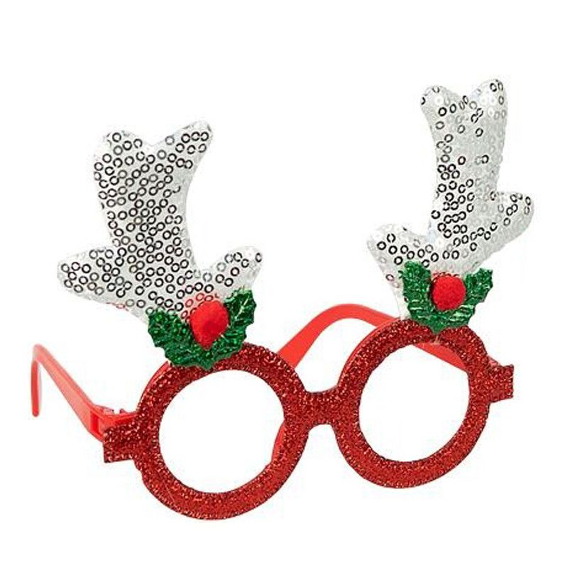 Новорічні окуляри без скелець із декором у вигляді блискучих ріжок та святкових елементів. Прикрашені паєтками й глітером, створюють веселе новорічне настроювання та підходять для фотосесій, вечірок і карнавальних костюмів. Виготовлені з легкого пластику. Розмір: ширина 14 см, висота 13 см, діаметр оправи 6 см, отвір 4,5 см. Зручно сидять і підходять як дітям, так і дорослим.