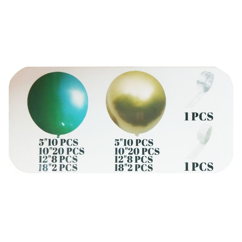 Набір повітряних куль у зелених та золотих відтінках - стильне рішення для створення святкової фотозони, декору приміщення або оформлення урочистої події. Поєднання насиченого зеленого кольору з елегантним золотом виглядає святково й водночас вишукано, підходить для днів народження, тематичних вечірок, ювілеїв, свят та фотосесій.