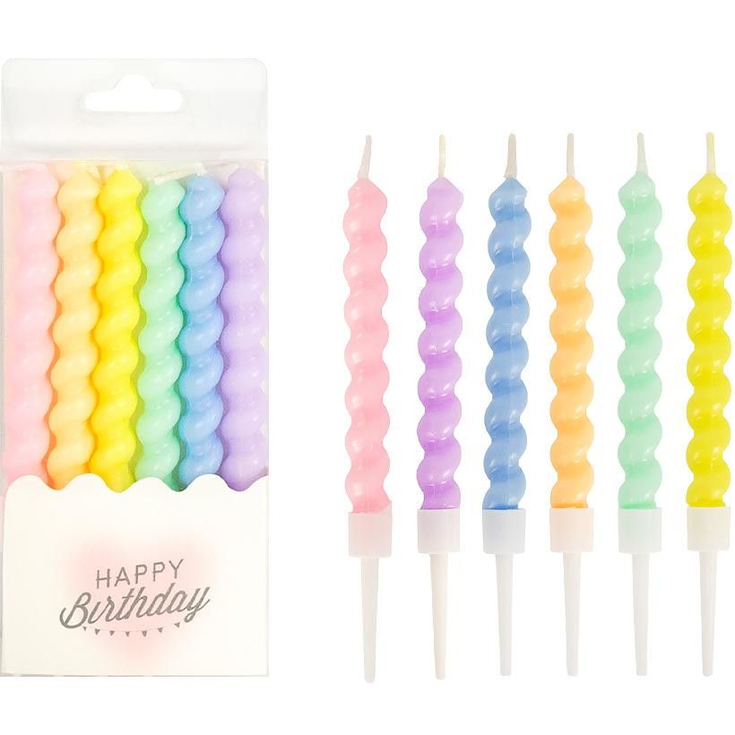 Набір свічок для торта "Спіраль" - ніжний та веселий декор для святкового десерту. Спіральна форма додає оригінальності, а пастельні кольори створюють м’яку, святкову атмосферу.